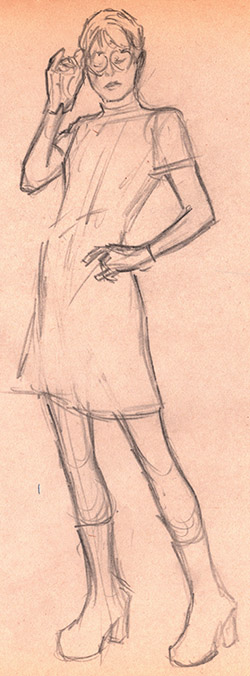 Retro outfit from @lifemodelhelen (‘Gram) for 5 min pose at Fantom Comics cosplay life drawing session; and the heart shaped glasses were a hoot.