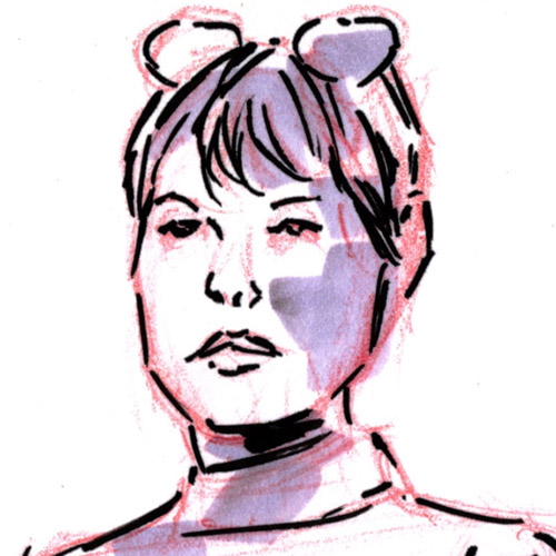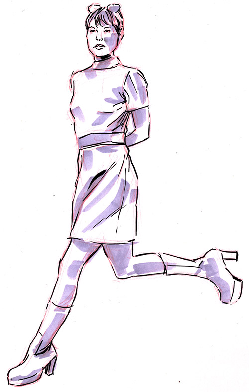 A 15 min. pose from @lifemodelhelen (‘Gram) in her vintage vibed cosplay during the life drawing session at Fantom Comics. Facial shading is too dark, and the red lead didn’t blend with Copic ink like the blue often does, but the colors fit her outfit more.